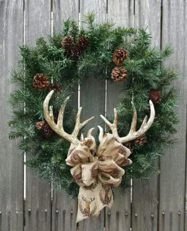 If you would like a wreath similar to this you could bring us your antlers and we will decorate one for you!